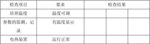 6.2.3.2测验手法:在完结设备的IQ后,查看培育箱各项操作预备作业安排妥当,按设备的规范操作规程空车运转,对下表所列项目进行查看,并将查看成果填入下表,接连三次。